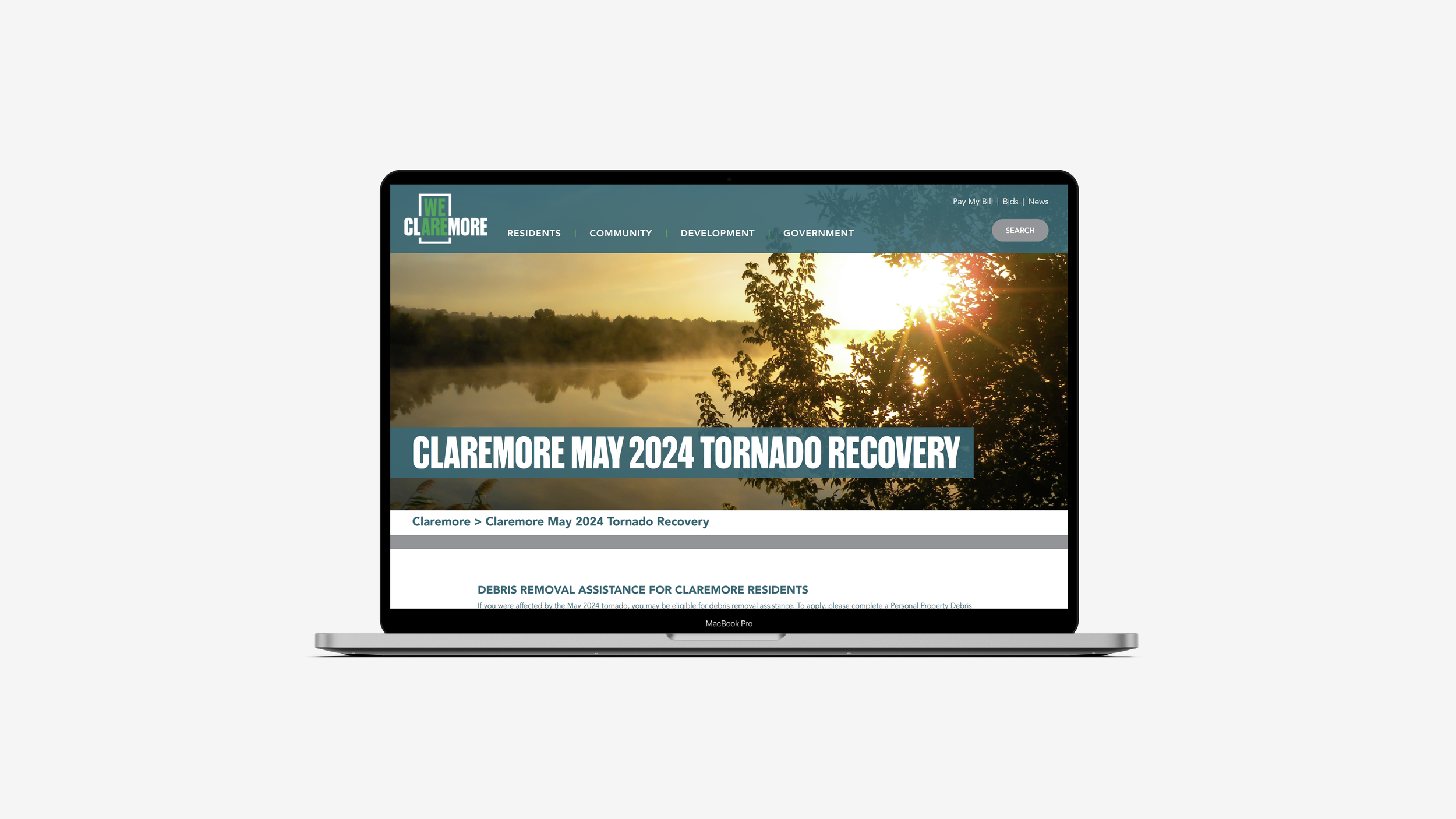 Outcome: With a focused crisis communications plan, ONE80 supported Claremore's robust storm response, which allowed residents to stay informed and connected them to essential resources in a time of recovery. In the month following the tornado, Claremore’s Facebook page saw a reach of169,000, an increase of 421.9% from previous months, and 71,600 unique visits, demonstrating how actively the community relied on the page for updates. The storm response webpage became the most popular page on Claremore's website, receiving more than 27,300 visits. This resource was crucial to relief efforts, as citizens were able to access information and life-saving resources real time.