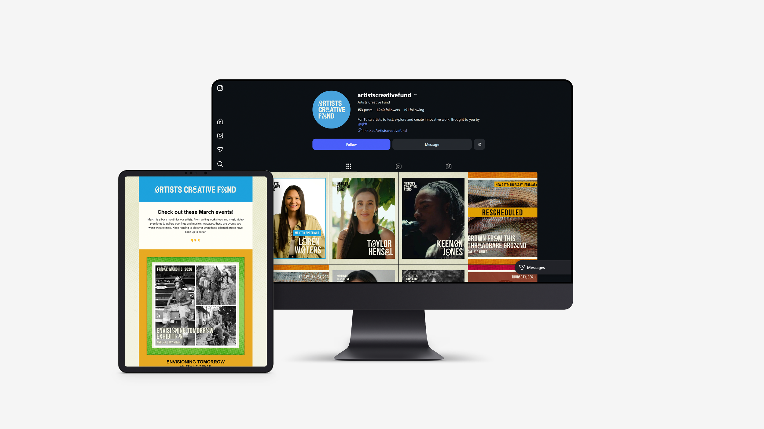 The Challenge: In addition to launching a new brand and introducing Artists Creative Fund (ACF) as a new entrant in Tulsa’s well-established arts ecosystem, the organization needed a long-term social media strategy to engage local artists and elevate awareness of their work. Establishing a distinct identity and building early visibility were critical to fostering participation, earning trust within the creative community and demonstrating ACF’s role as a meaningful supporter of local artists.
